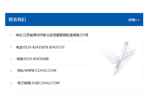 地址:常州市新北區友邦商務大廈1幢16、17層  電話:0519-85101652  傳真:0519-85112595  郵編:213022  網址:www.cz-jiayue_cn.1touhao.com  郵箱:xiajifengaa@163.com